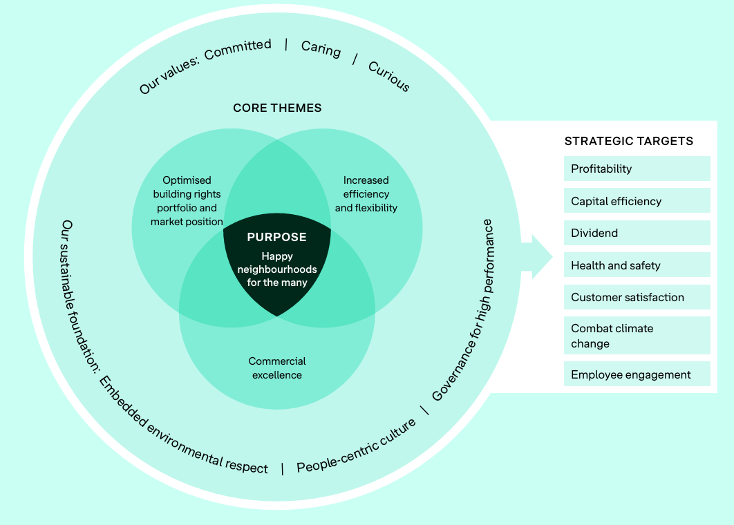 Bonava has three strategic core themes which support each other, and together they will lead us toward profitability, long term success and happy neighbourhoods for the many: Optimised building rights portfolio and market position, increased efficiency and flexibility and commercial excellence.
