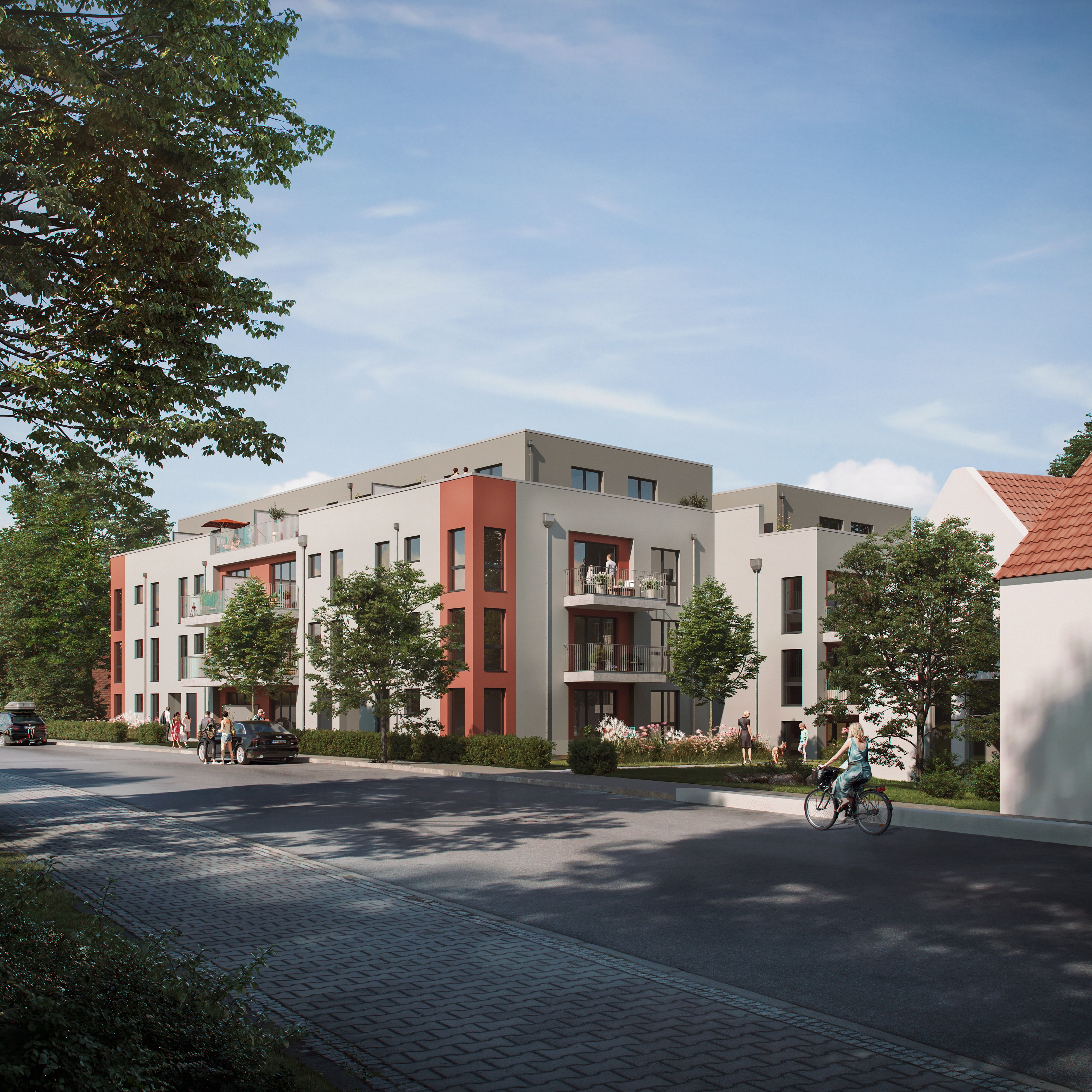 The new residential area is in Krefeld, immediately northwest of Dusseldorf and thirty kilometres from the border with the Netherlands. The 80 apartments will be distributed across three apartment blocks. The apartments are handicap accessible, with two to four rooms and ranging from 53 to 107 square metres in area. With a video door phone and, for example, electric Venetian blinds and open kitchens, the apartments are practically equipped and suited for both young people and seniors. A preschool, elementary school, playgrounds, doctor’s office and supermarket are within close walking distance.