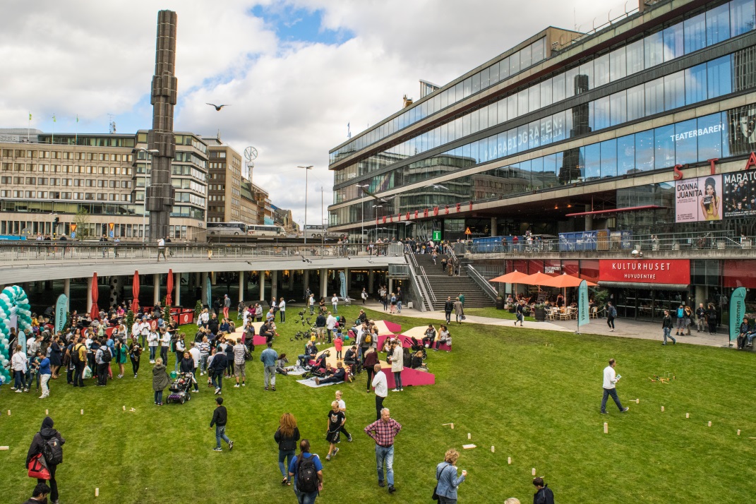 Sergels torg kan ses som ett nav i Stockholm, men istället för att stressa förbi kunde passerande i söndags spela fotboll, kubb och ta en fika i gräset. Bonava bjöd på kaffe, saft och bullar vilket under dagen lockade över 2 000 besökare.